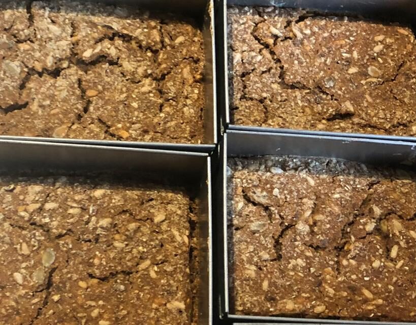 Met de rogge die groeide op onze buntakker bakken bij roggebuntjes, roggekoek en roggebrownies.