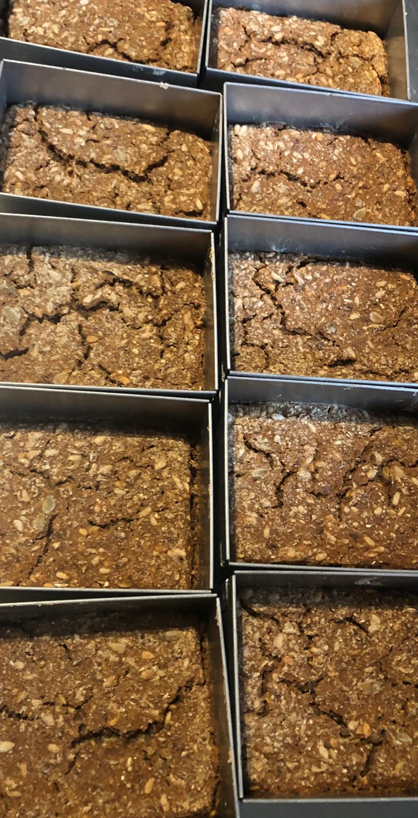Met de rogge die groeide op onze buntakker bakken bij roggebuntjes, roggekoek en roggebrownies.